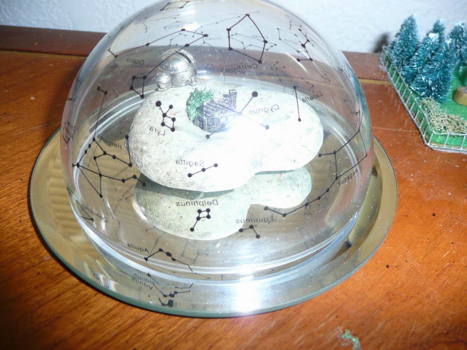 Since I am also an astronomy buff, I have a special display for Astronomy Day. Although it isn't technically part of SummerFunLand, it is next to it. The house and observatory are actually charms and are VERY small. The observatory is smaller around than a penny. The dome was part of a light-up constellation map for the ceiling which doesn't work anymore. But, it works great for this!