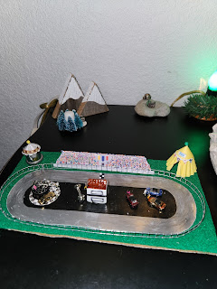 The theme for the fair this year is "Country Nights and Carnival Lights." I hope I hit is with this display of forest, camping, small town, and a small fair. There's even a river boat.